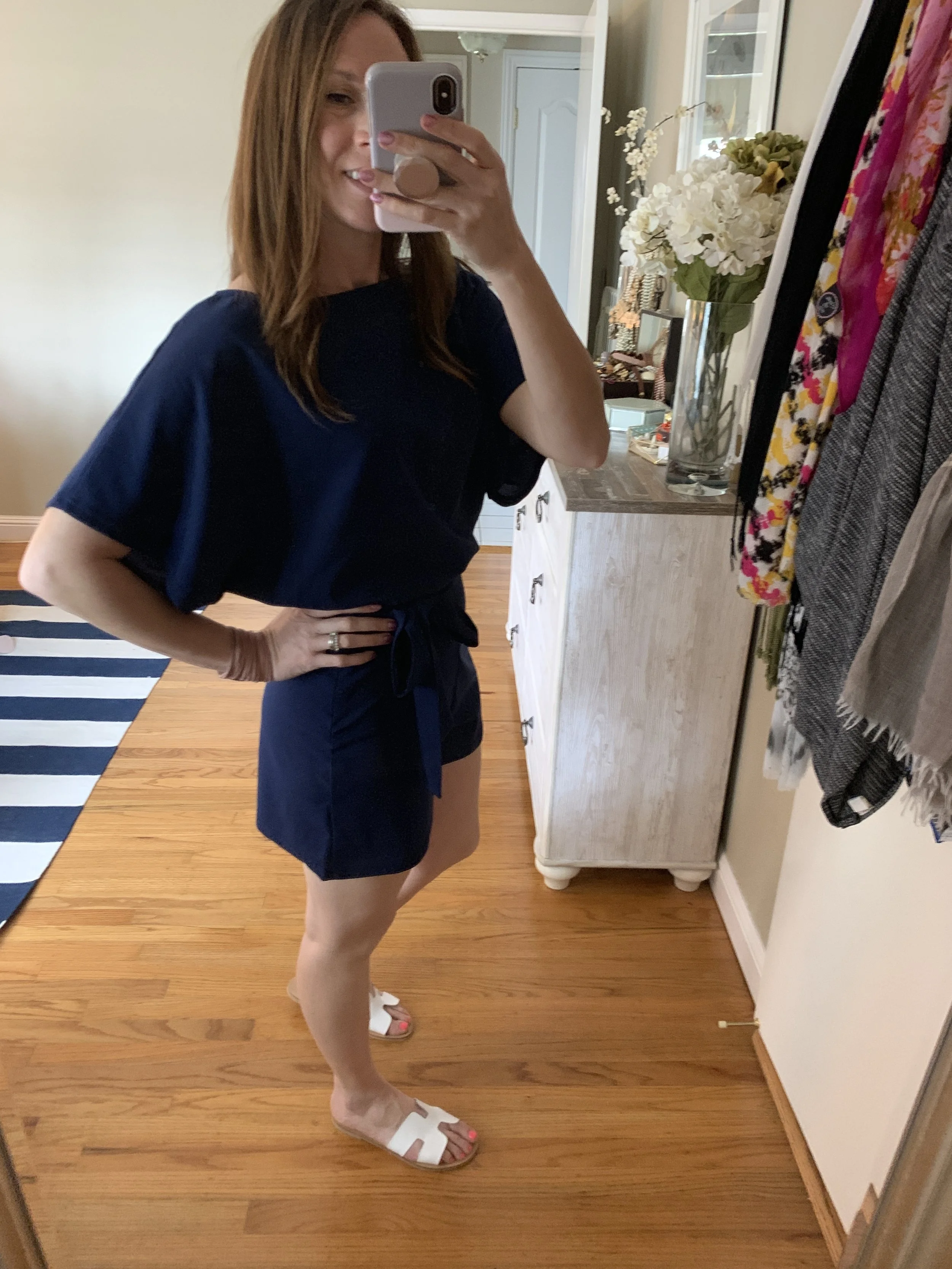 The first was a blue and white striped shorts romper. I love the look and I really loved the price, but ultimately I decided to return it because the fabric was just a little too heavy for me. If I lived in a climate that had more mild summers, I would have been inclined to keep it. But alas, it went back.