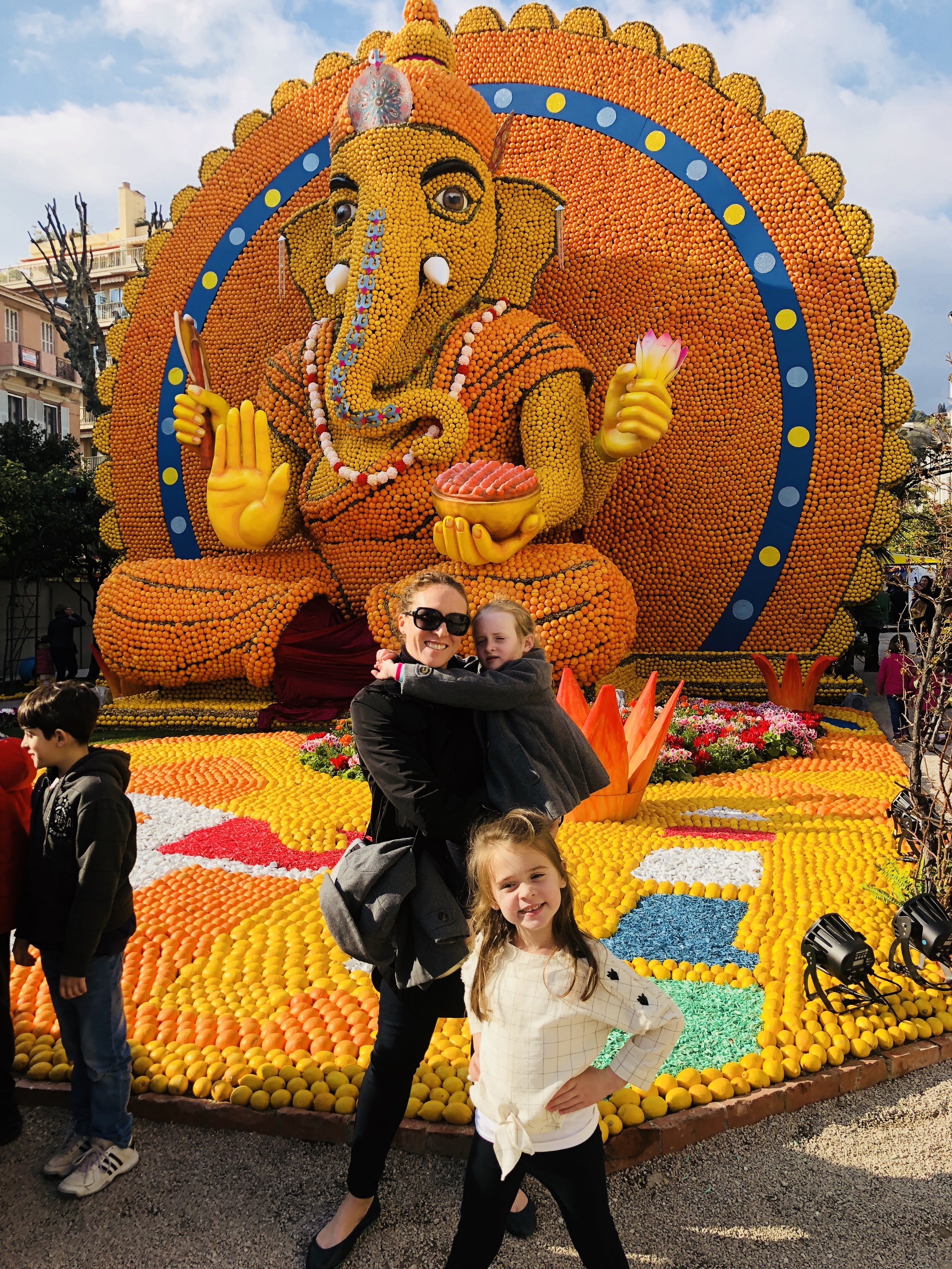 Madeleine, Elodie and I at the 96th Annual Citrus Festival in Menton, France during ski week 2018